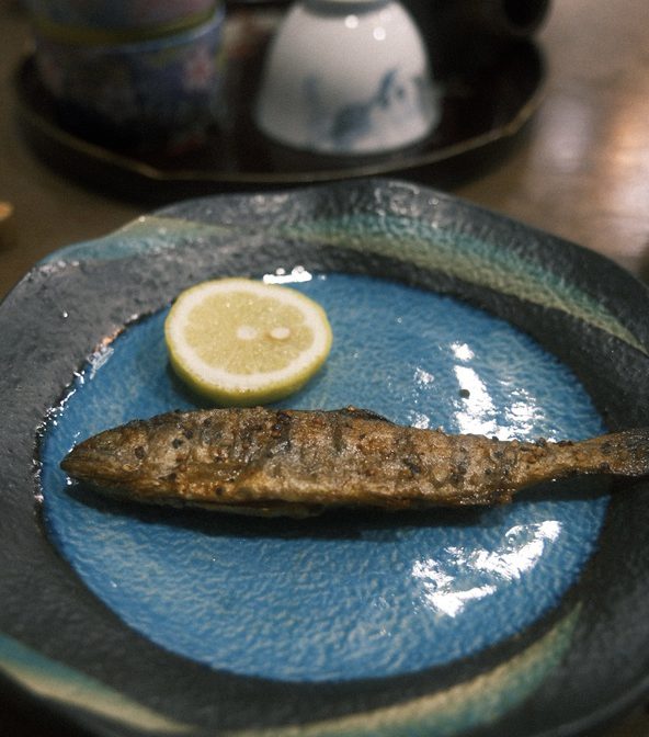 夕飯も美味で大ボリューム!ヤマメや鹿肉の燻製、猪肉の炒め物に、揚げたての天ぷら。